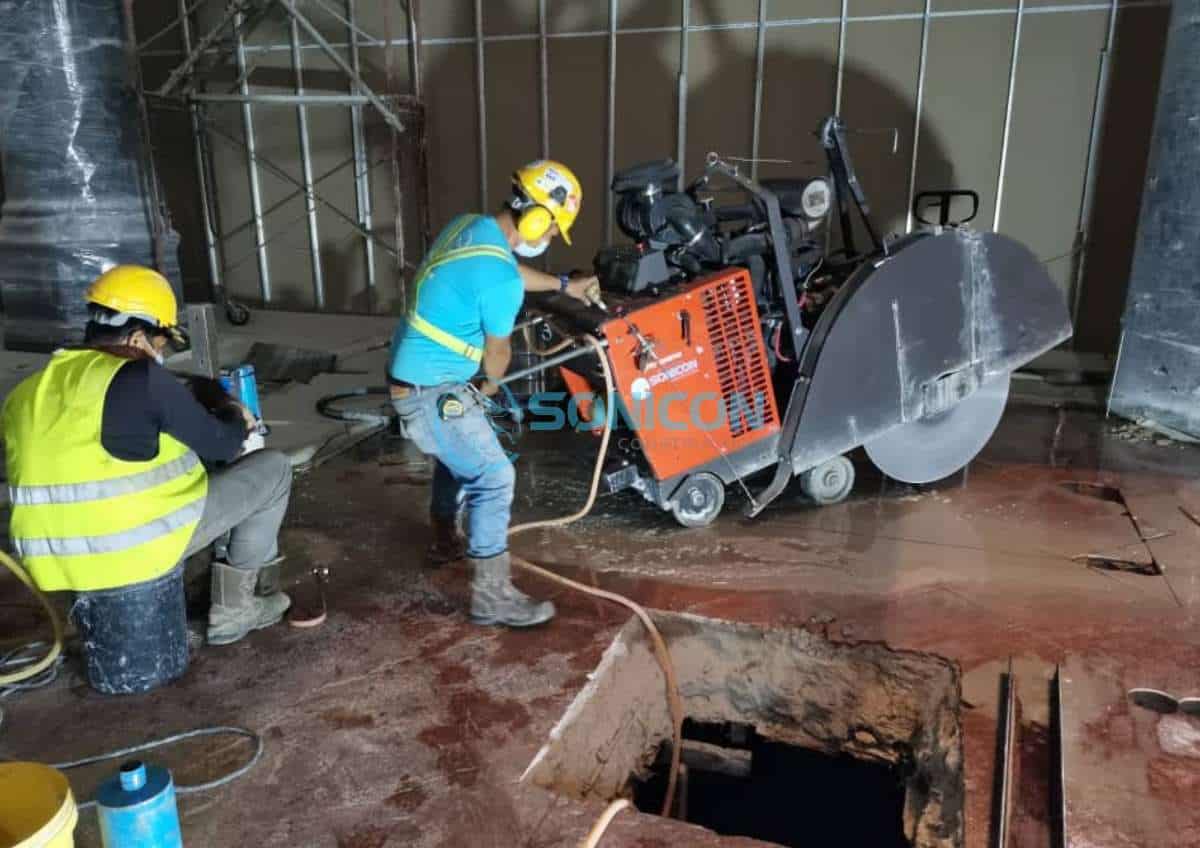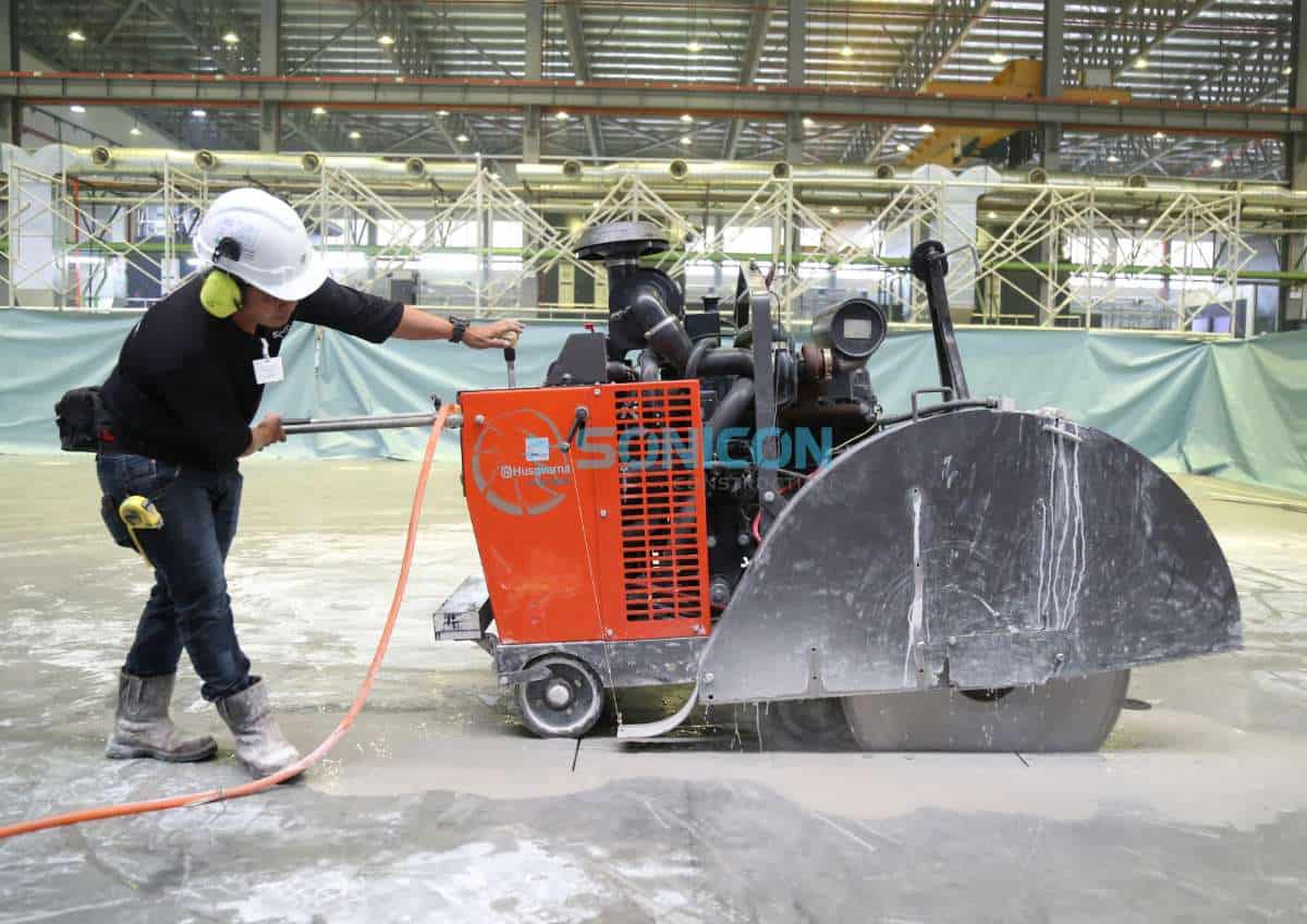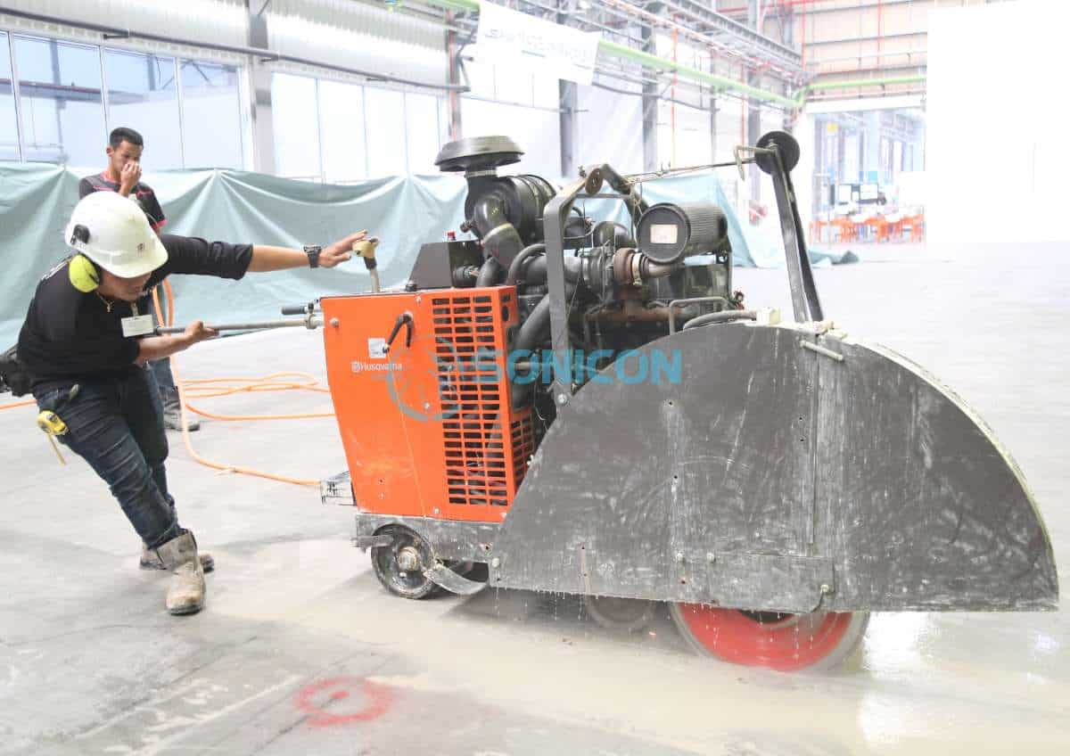 Sonicon has the biggest horse power floor saw machines in Malaysia that is capable of saw cutting up to 600mm thickness with high productivity. With weight more than 1000kg, diamond cutting process is stable and efficient, we have cut up to 200 metre run of concrete in a day!
