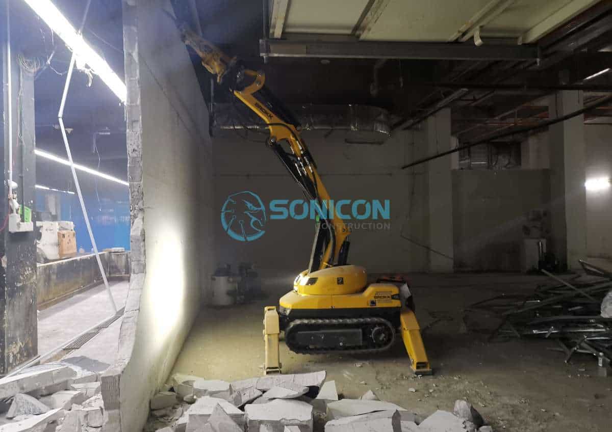Sonicon has the Most High Powered Compact Demolition Robot in Malaysia ( 1-ton weight ) that is accessible to Shopping Malls, Commercial Buildings and Residential Houses. Sonicon has completed reinstatement works using Demolition Robot for shopping malls which have lead to major saving in Project Timeline.